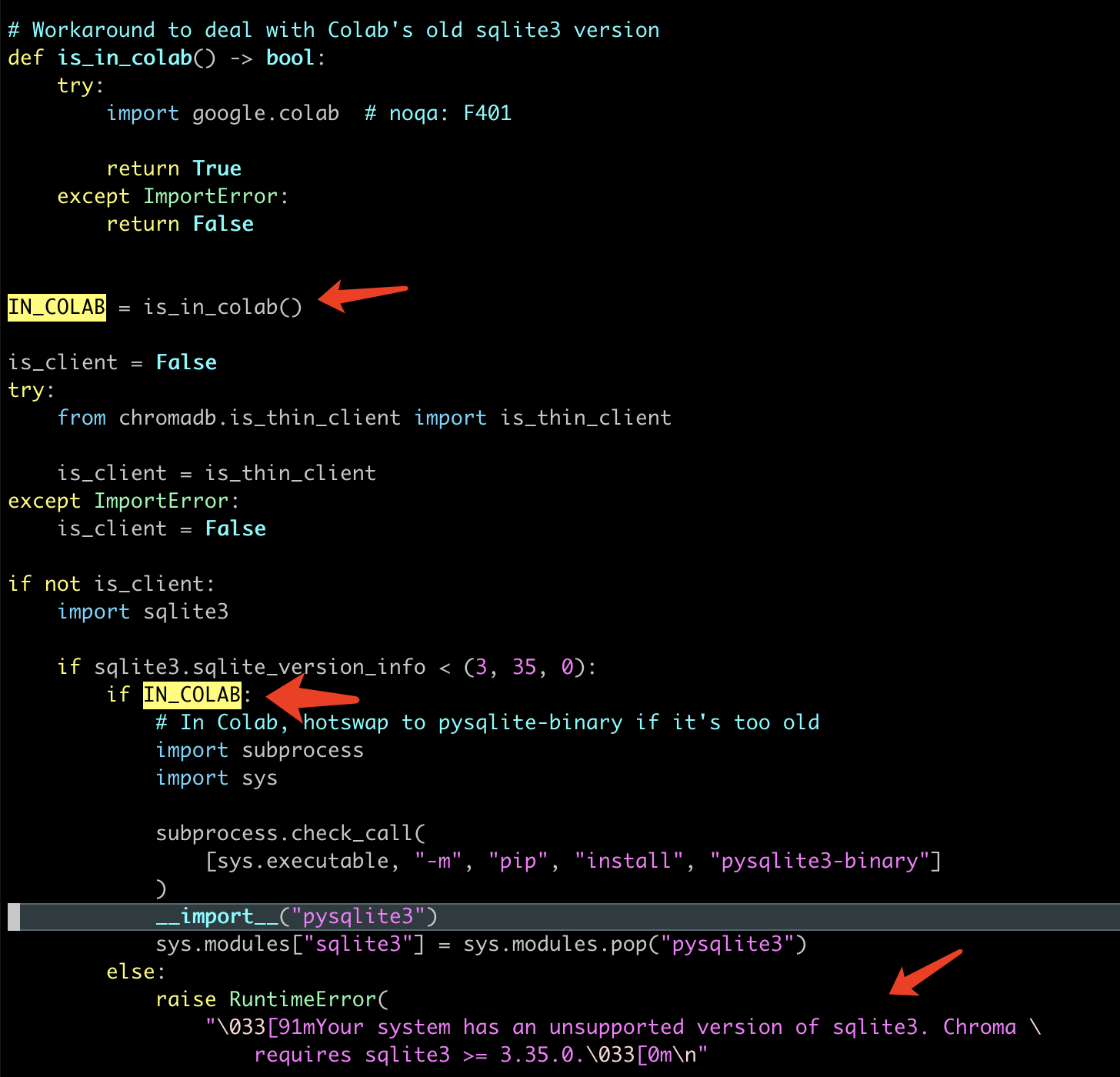 - 自动修复:因此 ChromaDB 在 Colab 中会自动安装 pysqlite3-binary作为解决方案