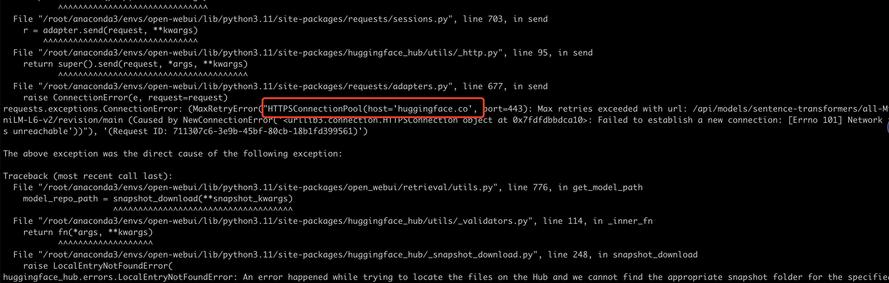 第一次运行 open-webui serve 报错,如图(解决链接)