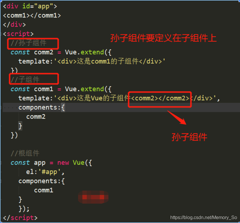 局部组件:组件存在父子关系,有固定的范围,在父组件中应用