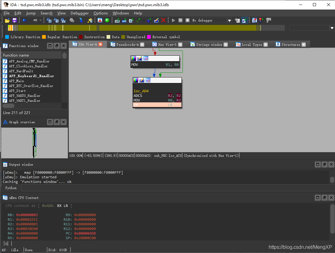 5.在代码窗口右键菜单中启动/停止 uEmu,启动时需要正确初始化寄存器。