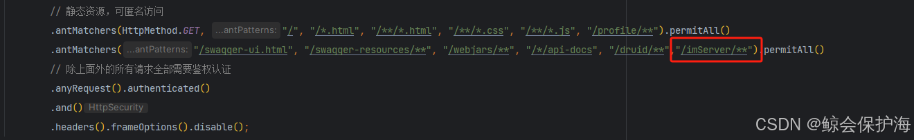 如果用到了SpringSecurity,则需要把服务路径添加到认证范围内。SecurityConfig