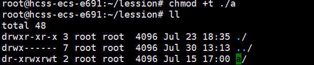 +t)后,只有文件所有者、目录所有者或 root 用户可以删除或重命名该目录中的文件。其他用户即使有写权限(w),也无法删除他人的文件。 -