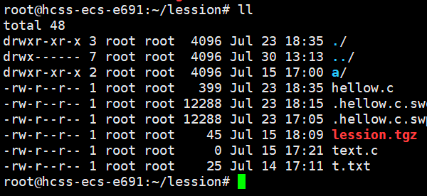 其中第一个root为创建人第二个root是创建组(以root用户创建的默认目录为例子)