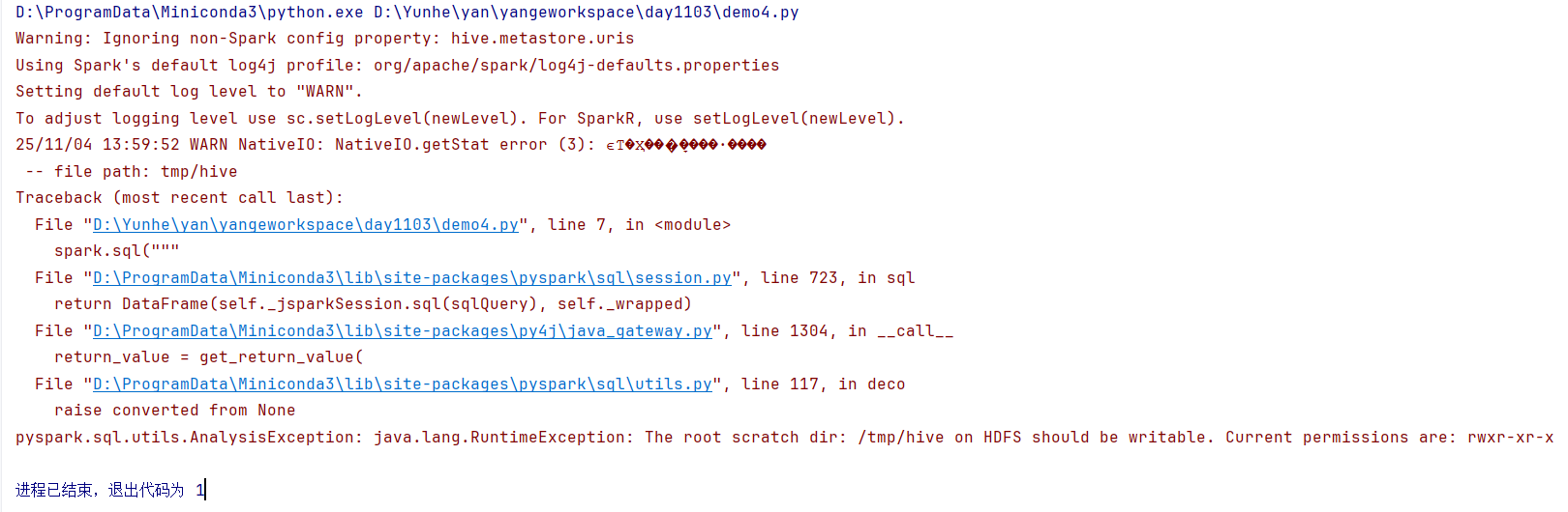 spark = SparkSession.builder.master("local[2]").appName("").config("spark.sql.warehouse.dir", 'hdfs://bigdata01:9820/user/hive/warehouse') \