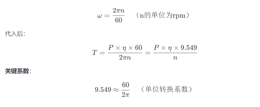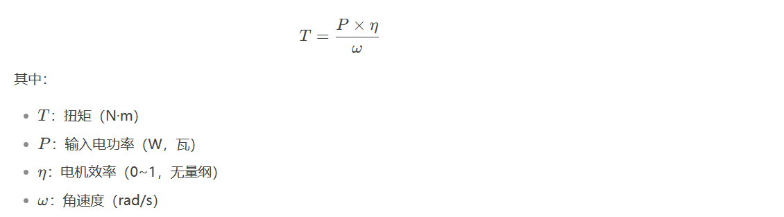 首先看一下扭矩、功率、电机效率和角速度的原始公式: