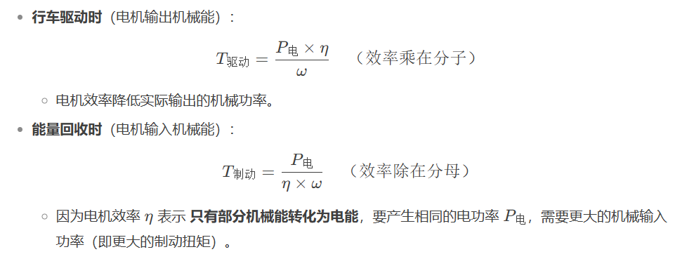 能量回收和行车扭矩计算逻辑不一样,因为此时的能量流动方向是: