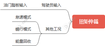 最大行车扭矩、限速扭矩>能量回收扭矩>蠕行扭矩、油门踏板扭矩
