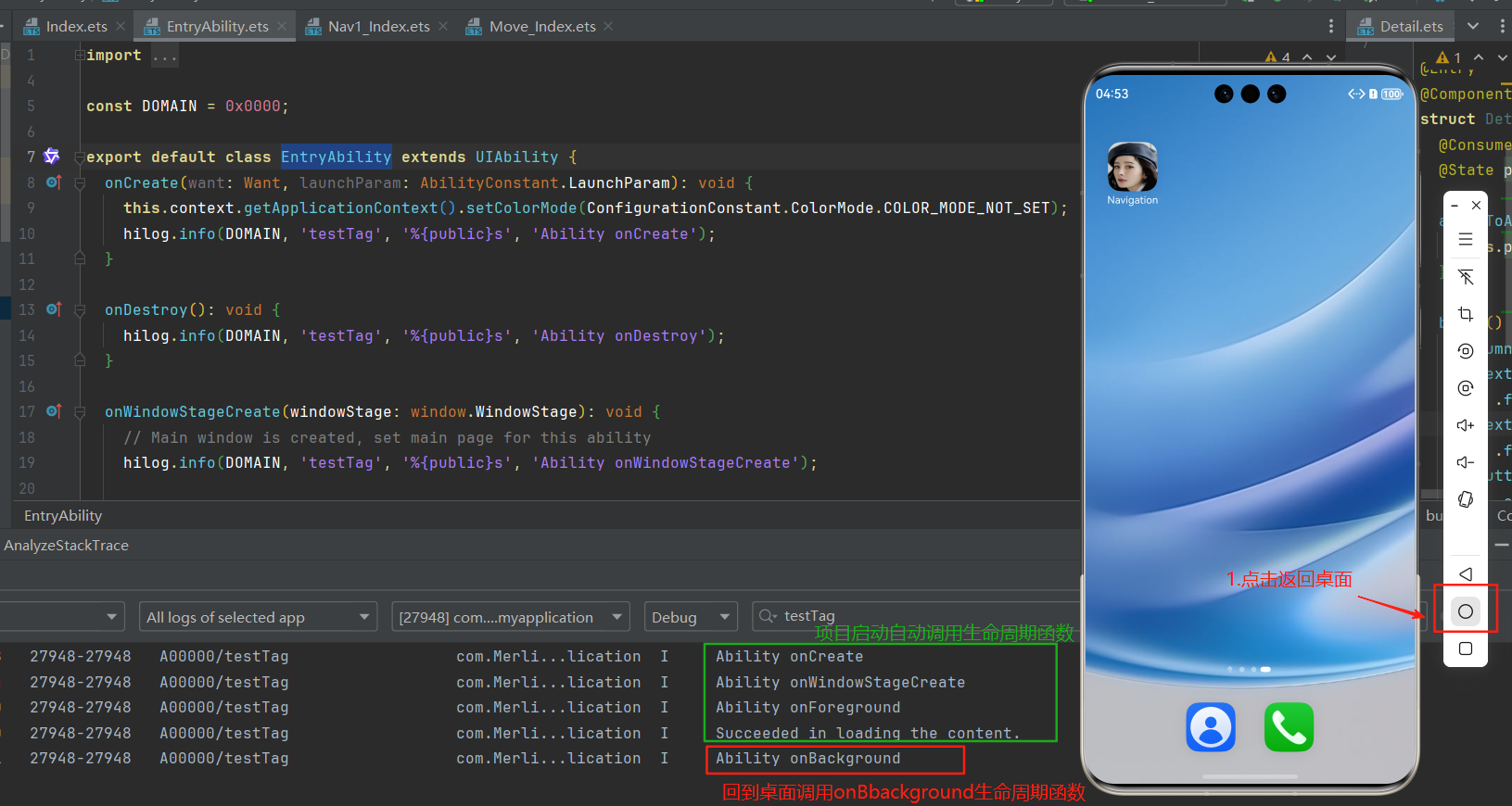 在鸿蒙应用的 EntryAbility.ets 文件里写了一些生命周期函数,在应用的整个生命周期里会依次调用这些函数,具体介绍前往华为的官方文档 ↓文档中心