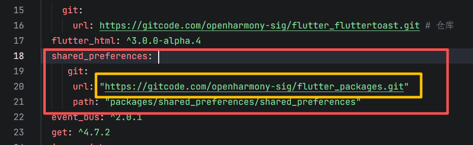 然后需要在 pubspec.yaml 里把原来的git地址改成我们刚刚下载好的相对路径,如下图所示:
