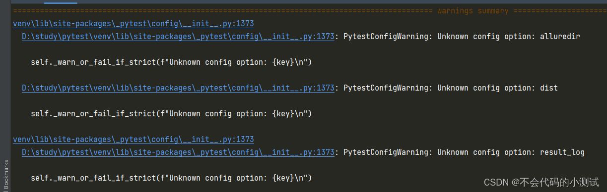 问题:在ini中配置了一些选项后运行pytest,会出现下面的警告信息