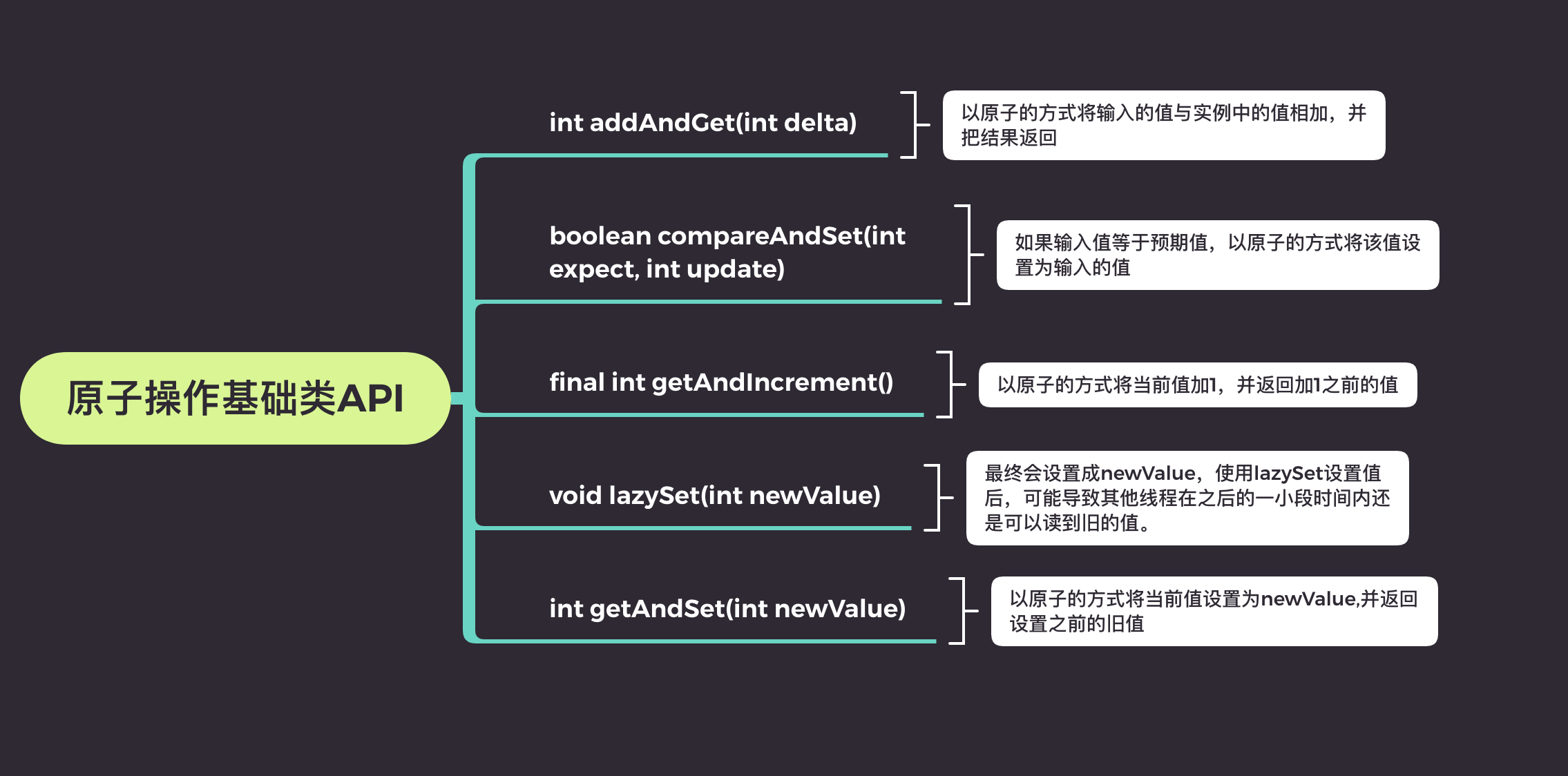 如何解决这种问题,其实很简单只要我们保证我们的操作是原子操作即可,简单来说就是讲更新的三个步骤合并成一个步骤即可,在Java中JDK已经为我们提供了很多的