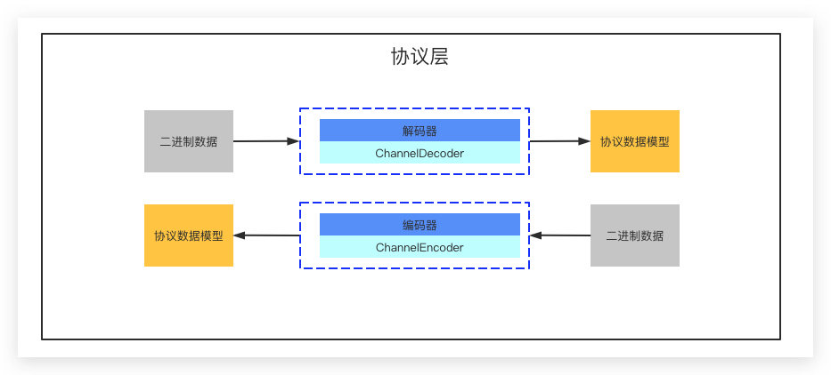 下面代码不是重点,重点知道协议就是,约定从tcp连接中读取数据的方式和方法。比如约定了读的第一个字节是协议类型,第二个是序列化类型,第三个是报文数据长度,第四个就是具体的报文数据。