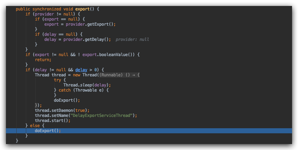 service.setRegistry(registry); // 多个注册中心可以用setRegistries()