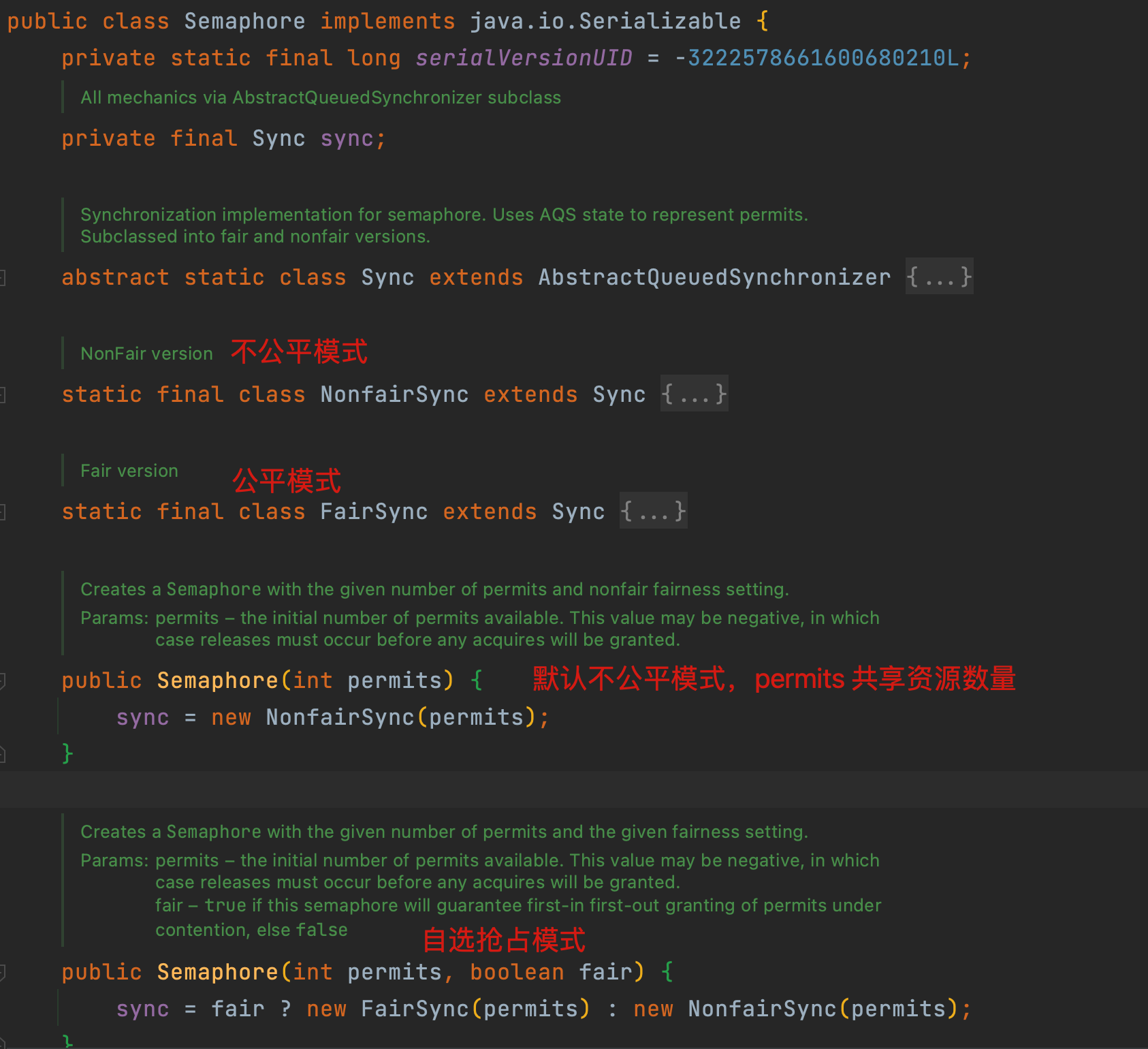 sync = fair ? new FairSync(permits) : new NonfairSync(permits);