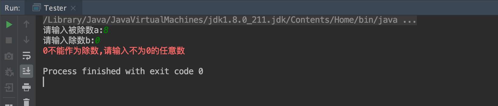 当出现算术异常直接提示: "0不能作为除数,请输入不为0的任意数"