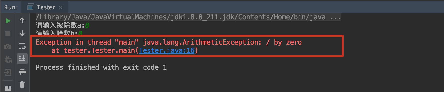 前面我们已经对 Error 做了说明,现在就主要来看下 RuntimeException。 RuntimeException 从名字来看就是 运行异常,所谓运行异常就是可能在程序运行过程中发生的异常,这种异常一般是可以通过代码逻辑进行处理的。 我们举例一个例子,我们都知道0不能作为除数。但是假如在下面这个代码中