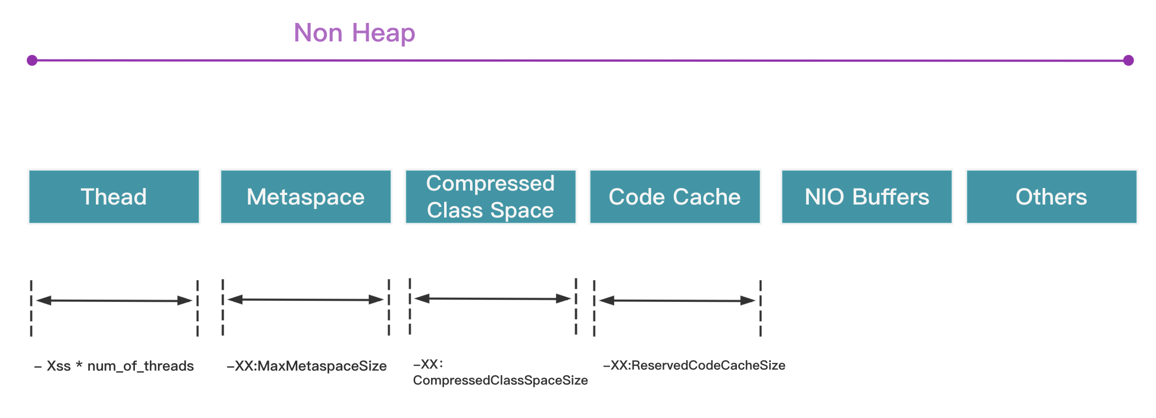 Thread配置线程的栈大小,决定了你调用链的深度。Metaspace可加载类的信息大小