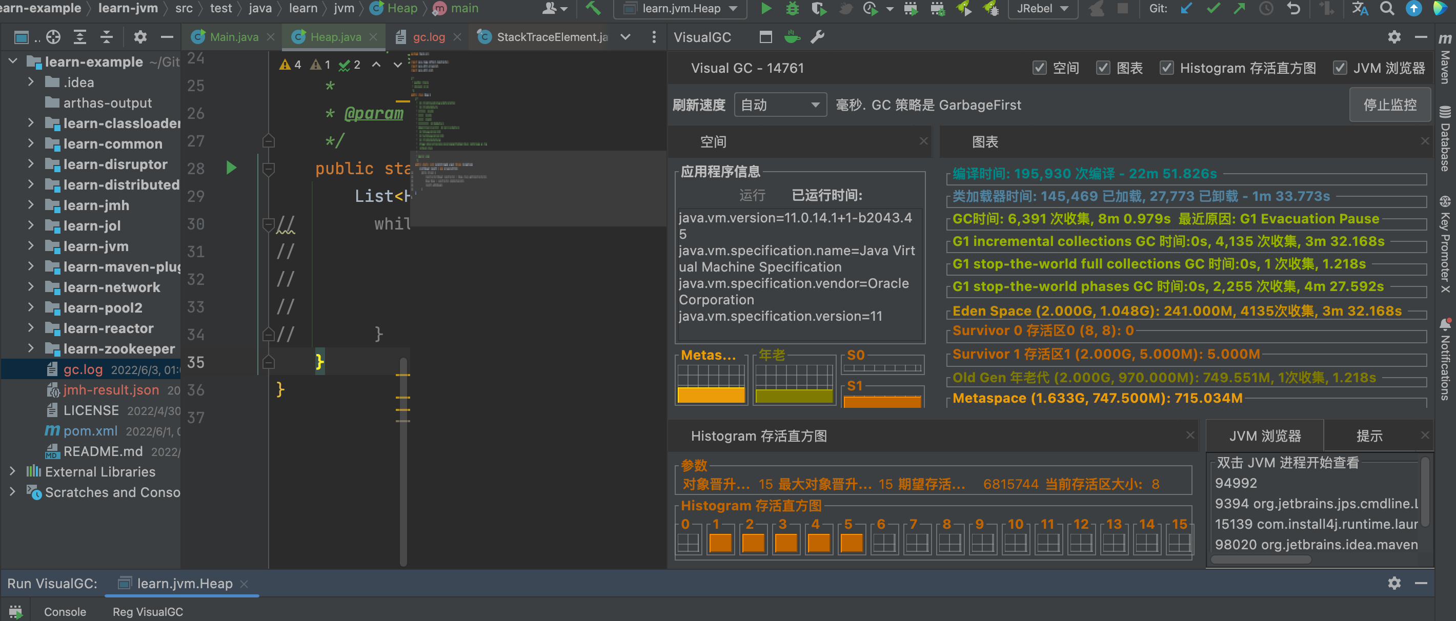 堆上的问题是比较容易排查的,可以通过工具把堆的信息给dump下来,然后就能直接定位到大对象,并通过调用链路定位到具体的代码,后面会介绍工具