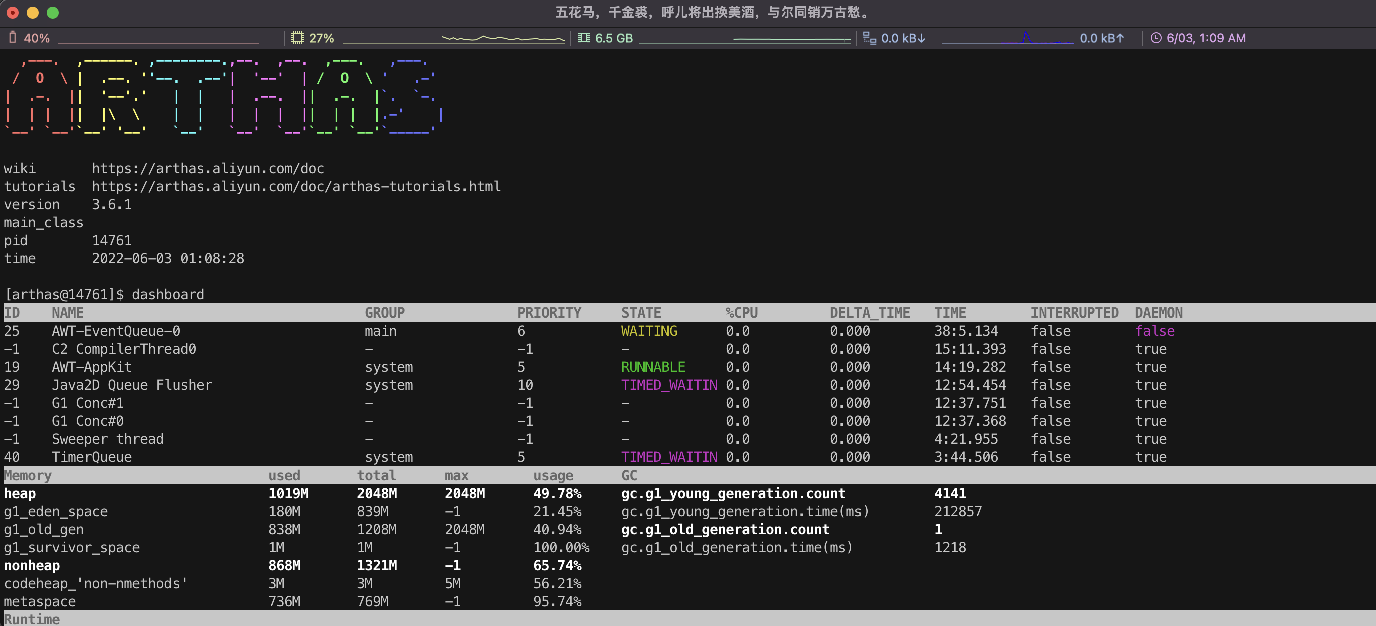 你可以 thread -n 3 打印出最忙的三个线程 thread.