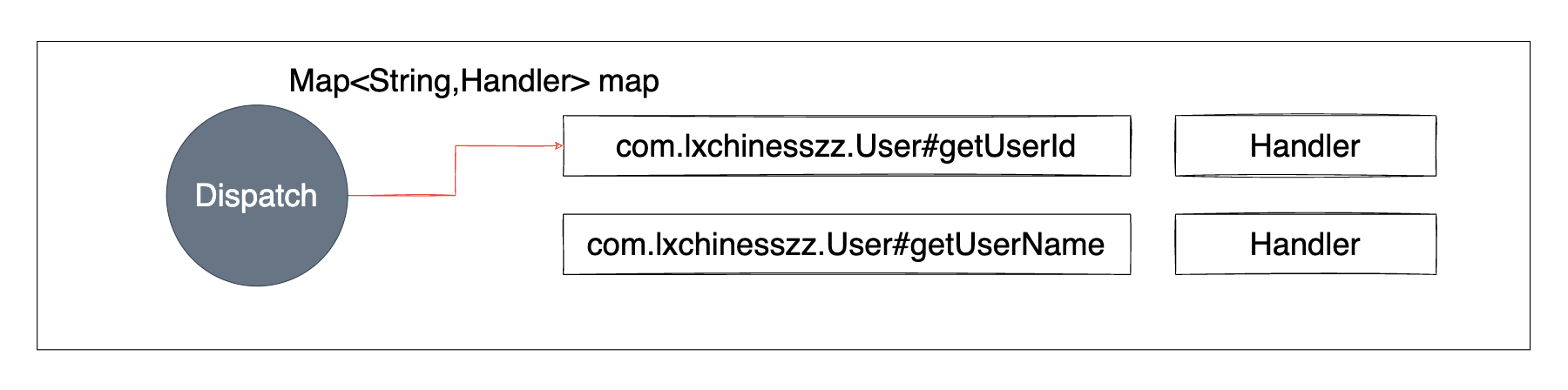 - 服务收到请求,Dispatch 根据请求信息从 map 中获取执行器。