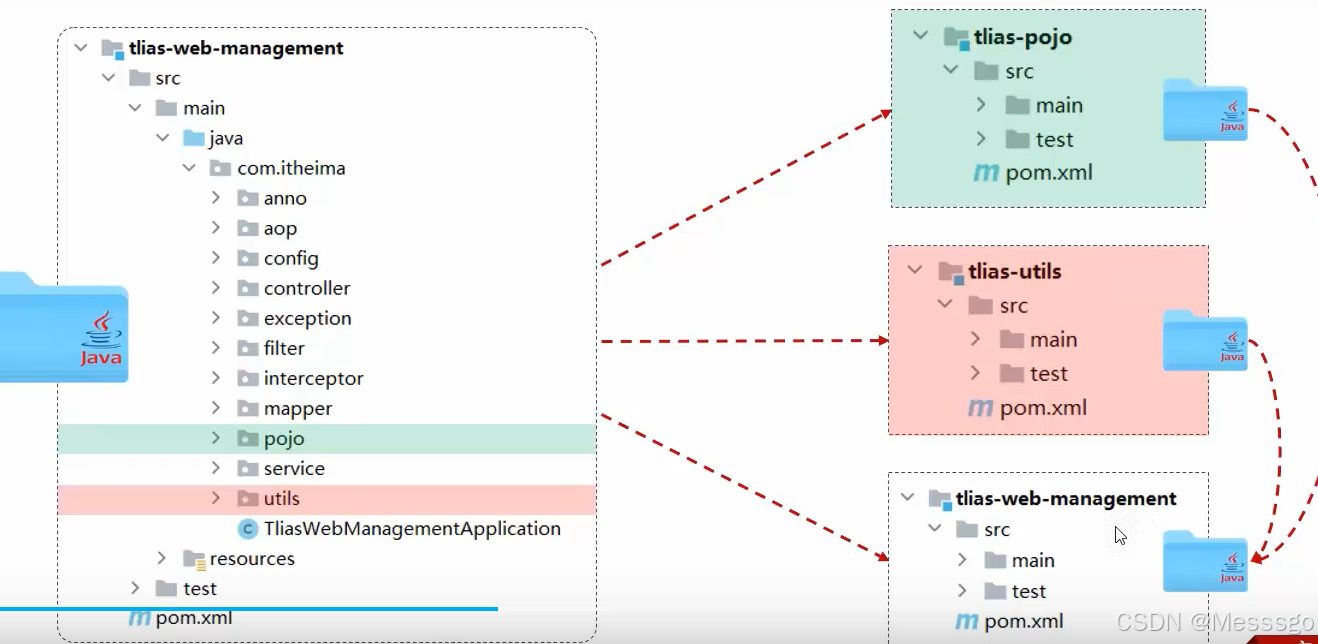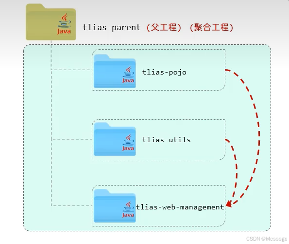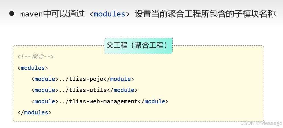 为社么要聚合,因为一个一个打包效率低,把所有模块聚合到一个模块里