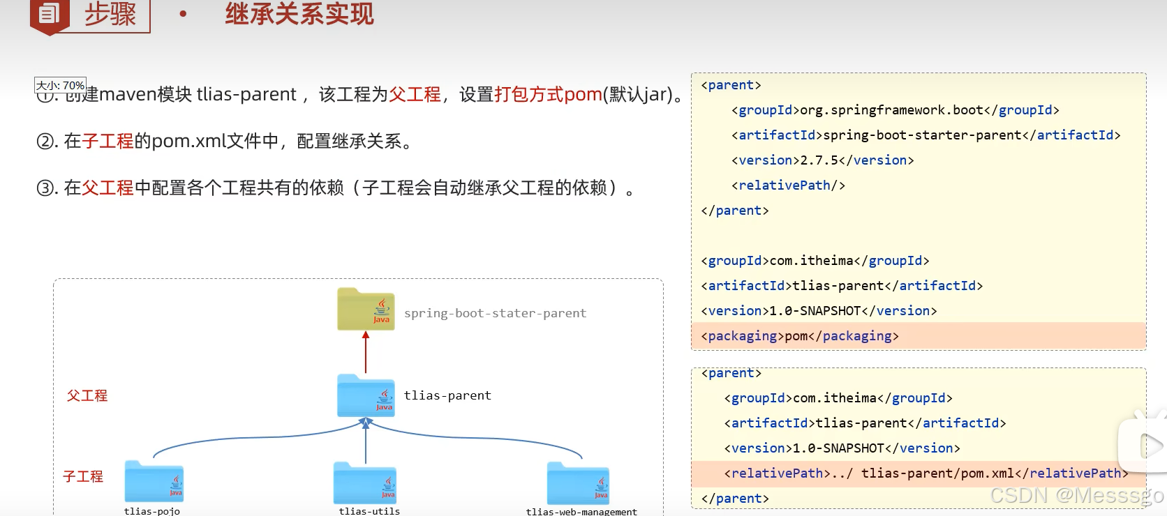 与java继承相似,子工程继承父工程的配置信息,常见与依赖关系的继承,可以简化依赖配置,统一管理依赖