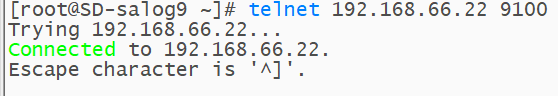 然后测试联通性,通过telnet访问9100端口,查看是否正常