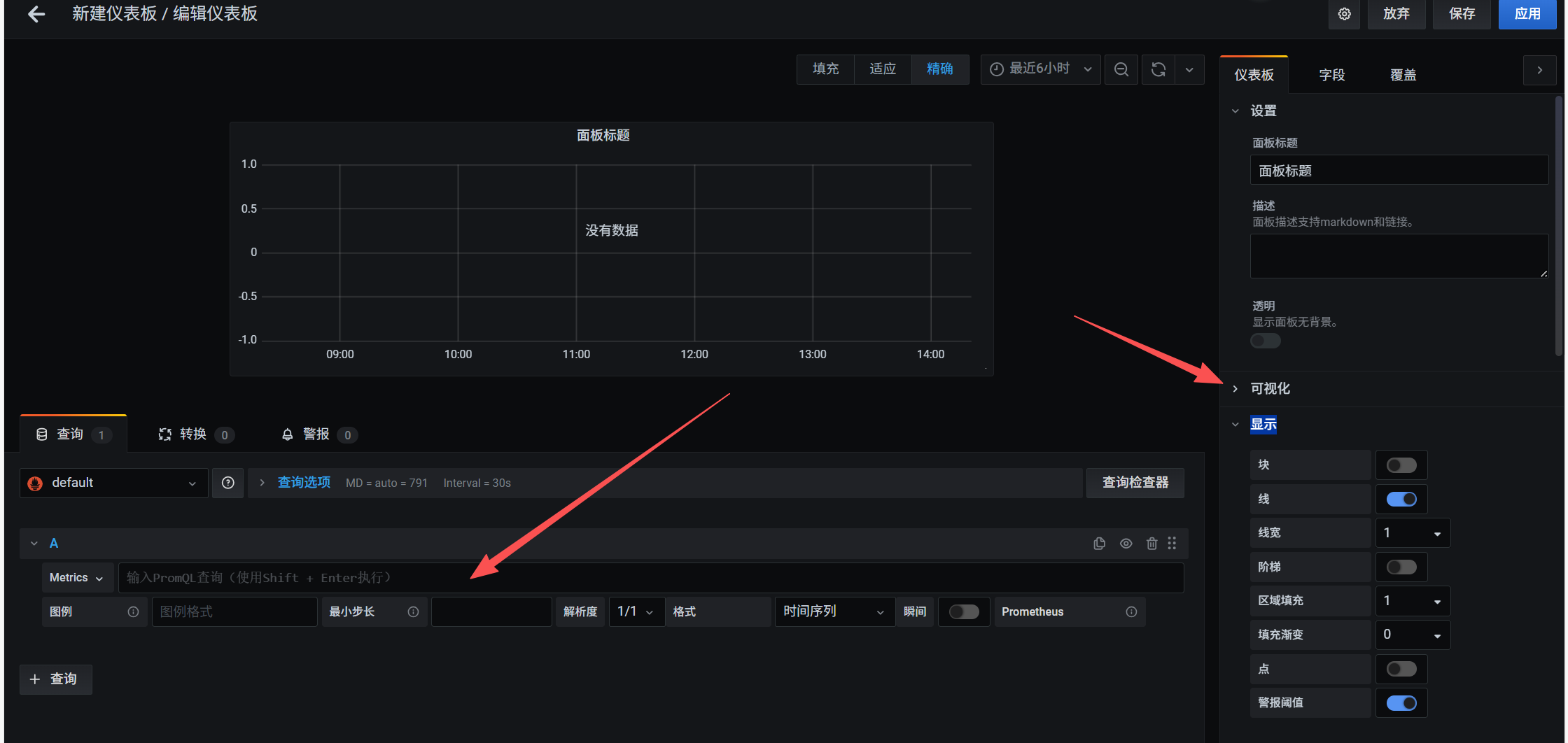 比如我这里想看服务器的/mnt占用信息,右边丰富自己的仪表盘,很多功能,自己去研究吧。额外注意一点,查询表达式里的instance一定要和prometheus.yml里一致才可以查询到。如果没有数据,拿着表达式去Prometheus里去查,一步步排查问题。