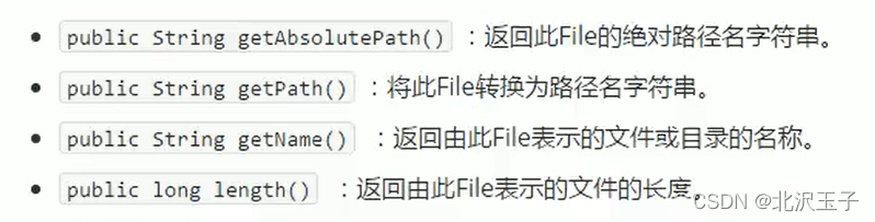 getAbsolutePath()方法返回的是绝对路径表示的字符串,但getPath()根据File对象创建时的参数,可以使绝对路径字符串,也可以是相对路径字符串,File类的toString()方法实际上就是调用了getPath()方法