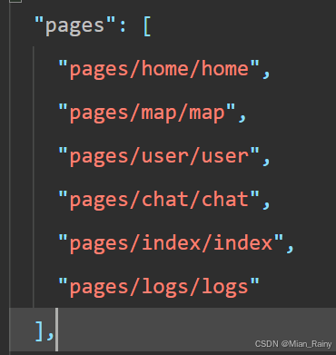 4.问题所在:tab页签对应页面必须放在 pages 页面数组最开始的位置,不能往后放,否则无法生效。如图: