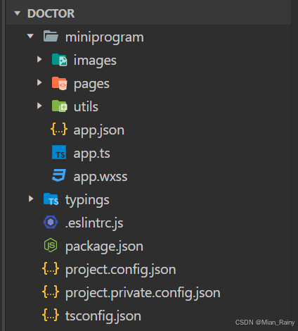- 第二次尝试,根据下面报错,搜索到了优快云一篇文章,并尝试把文件全都挪出miniprogram下面,但是仍然无法正常渲染。将文件结构恢复为原来的结构,删除tabBar中的图标设置,保存,这次连字也无法渲染了。
