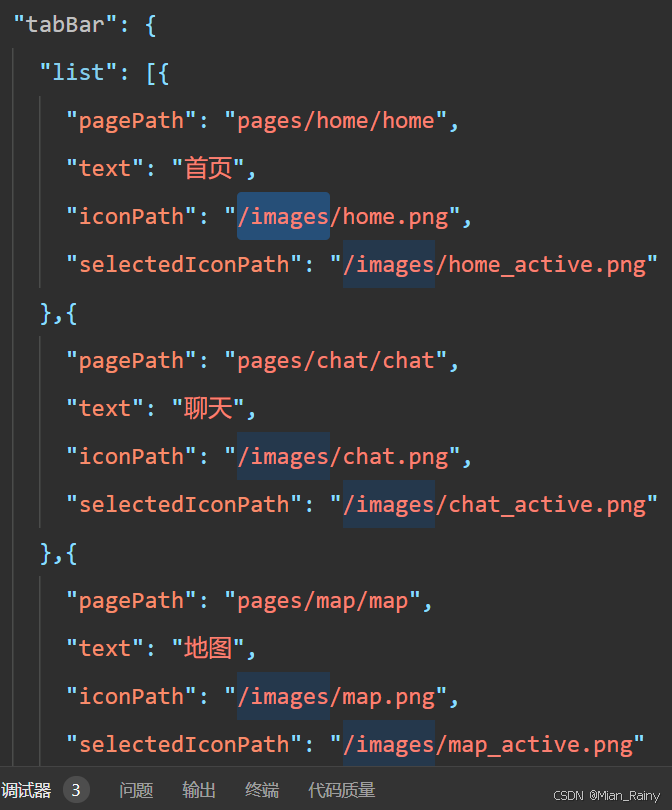 问题描述:微信小程序开发时,app.json配置全局底部导航栏的时候图片路径没错,但是页面渲染不出来