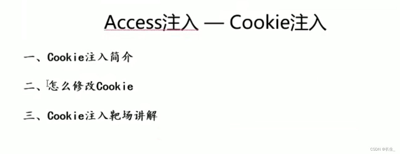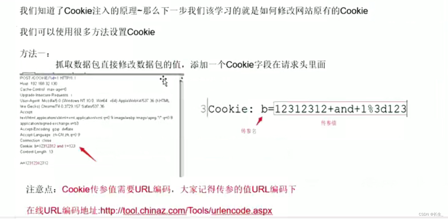 - Cookie注入的适用范围:POST和GET传参被过滤、被检测,而Cookie不被检测的时候使用