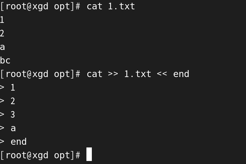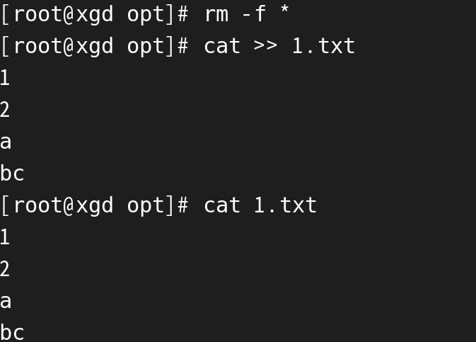 >> 对标准输出重定向,但是是追加的形式,下次输出的内容会跟在上一次输出的内容的后面。