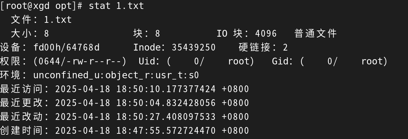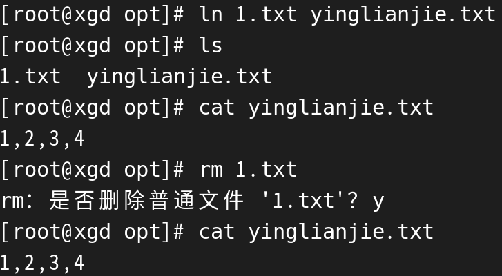 我们先为文件1.txt创建硬链接,通过实际操作我们验证了之前所说的特点。