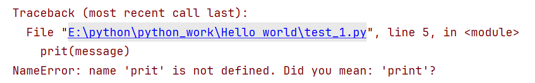 当程序出现错误时,解释器将提供一个traceback,traceback是一条记录,第一行告诉你第几行出现错误,第二行帮你快速找出错误,第三行帮你指出它发现的是什么样的错误。
