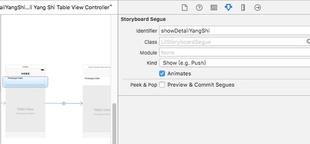 DetailYangTableViewController就是tableview B的类名.