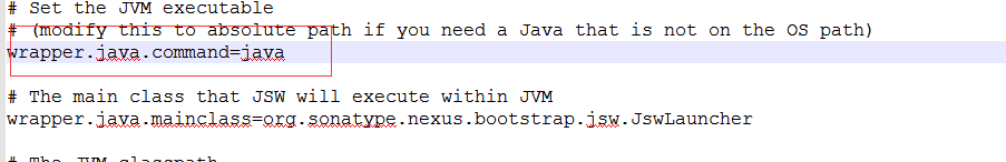 (2)配置java路径 D:\Download\nexus\nexus-2.12.0-01-bundle\nexus-2.12.0-01\bin\jsw\conf\wrapper.conf 默认是java