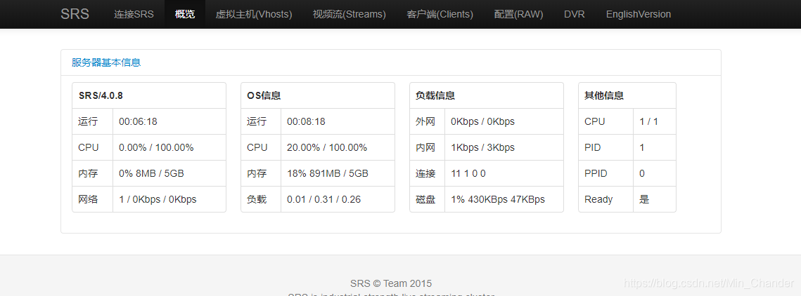 理解了上面的概念之后,我们会发现问题更加的清晰了,我们要如何才能实现这样一个功能,核心就是需要搭建一个服务,这个服务能够通过RTMP协议实现音视频流的接收并推送。那么问题又来了,搭建一个这样的服务难吗?要用什么语言开发呢?我完全不知道怎么下手?别担心,既然我们能够想到,肯定有大佬早都想到了这个问题了,开源项目srs可以完美的解决我们的问题,这个项目是国人开源的,不得不感慨国人真的越来越牛了。同时srs支持docker部署,参考链接https://github.com/ossrs/srs-docker/tree/dev#usage,只要5分钟,你就可以搭建一个自己的流媒体服务器了。搭建成功后你可以访问服务器地址查看是否正确启动访问地址:http://192.168.1.9:1985/console/,我在虚拟机启动,所以这里是我们虚拟机地址,你只需要修改为自己的地址即可。启动后的界面大致张下面这样: