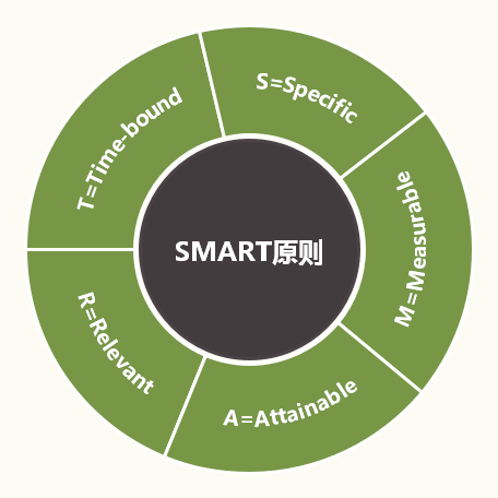 SMART原则,即S=Specific、M=Measurable、A=Attainable、R=Relevant、T=Time-bound