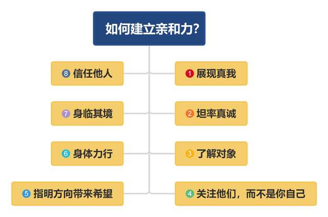 2、要赢得信任,领导者必须表现出工作能力、亲和力和性格优势。