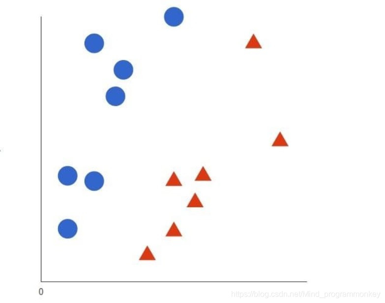 支持向量机的基础概念可以通过一个简单的例子来解释。让我们想象两个类别:红色和蓝色,我们的数据有两个特征:x 和 y。我们想要一个分类器,给定一对(x,y)坐标,输出仅限于红色或蓝色。我们将已标记的训练数据列在下图中: