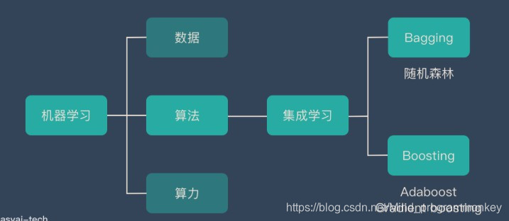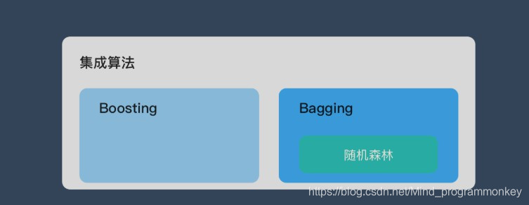 随机森林属于 集成学习 中的 Bagging(Bootstrap AGgregation 的简称) 方法。如果用图来表示他们之间的关系如下: