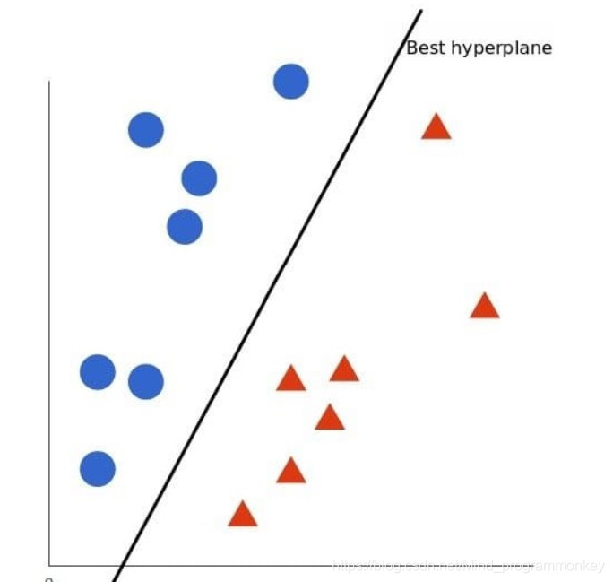 超平面是分割输入变量空间的线。在SVM中,选择超平面以最佳地将输入变量空间中的点与它们的类(0级或1级)分开。在二维中,您可以将其视为一条线,并假设我们的所有输入点都可以被这条线完全分开。SVM学习算法找到导致超平面最好地分离类的系数。