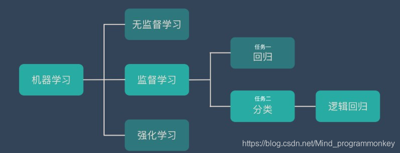 逻辑回归的位置如上图所示,它属于机器学习 – 监督学习 – 分类 – 逻辑回归。
