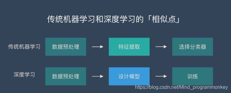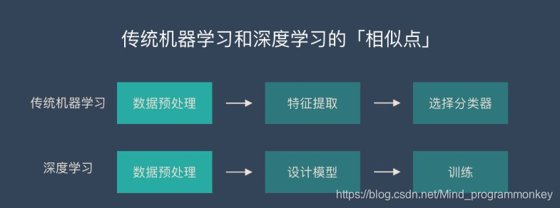 在数据准备和预处理方法,两者是相似的。都可能对数据进行一些操作:数据清洗、数据标签、归一化、去噪、降维。