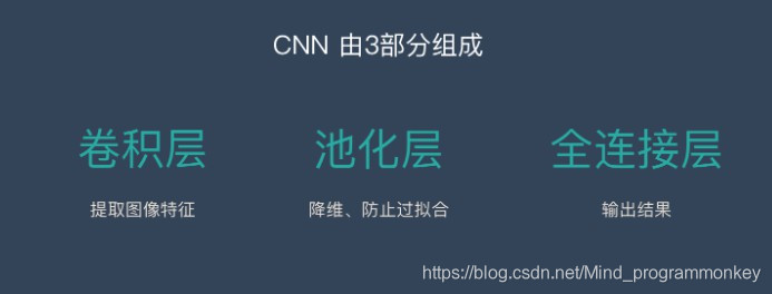 卷积层负责提取图像中的局部特征;池化层用来大幅降低参数量级(降维);全连接层类似传统神经网络的部分,用来输出想要的结果。