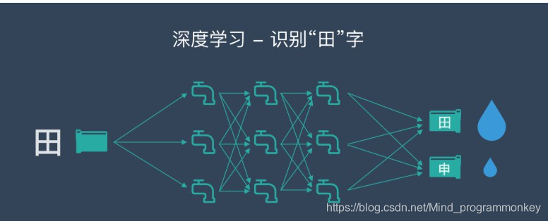 如此反复进行,知道所有汉字对应的水流都可以按照期望的方式流过整个水管网络。这时,我们就说,这个水管网络是一个训练好的深度学习模型了。当大量汉字被这个管道网络处理,所有阀门都调节到位后,整套水管网络就可以用来识别汉字了。这时,我们可以把调节好的所有阀门都“焊死”,静候新的水流到来。