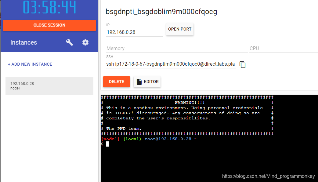 然后新建一个实例,实例中开启一个terminal命令行,并开启4hour的玩耍时间。