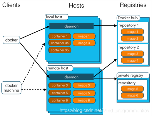 - 仓库(Repository):仓库可看成一个代码控制中心,用来保存镜像。